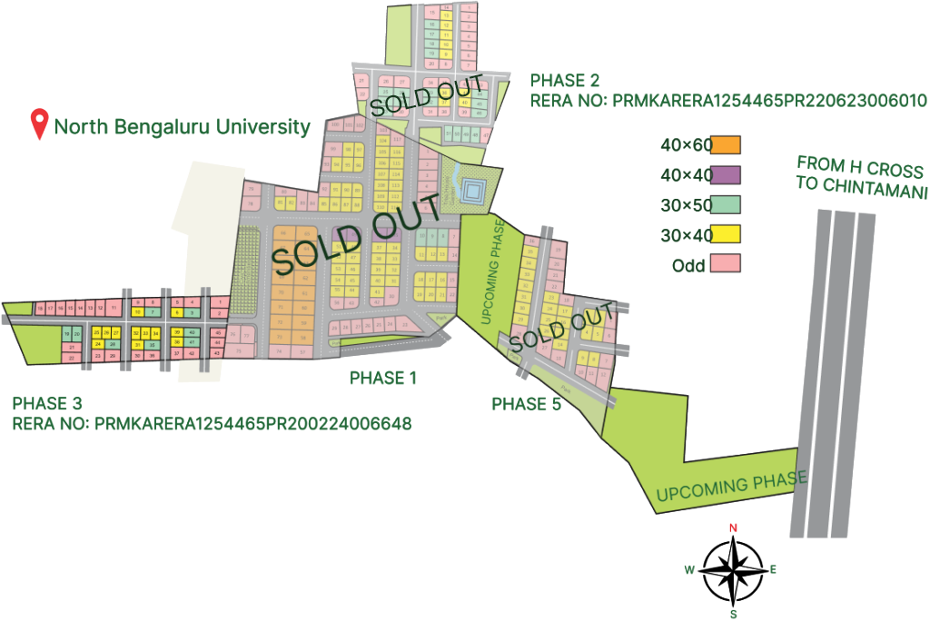 Welcome to Vaibhav Upavan, a premier plotted development near H Cross on the Hoskote Chintamani Highway. This project offers both excellent connectivity and a tranquil environment. Spread across 25 acres and developed in five phases with RERA approvals, Vaibhav Upavan ensures transparency, quality, and legal compliance for a secure investment.
